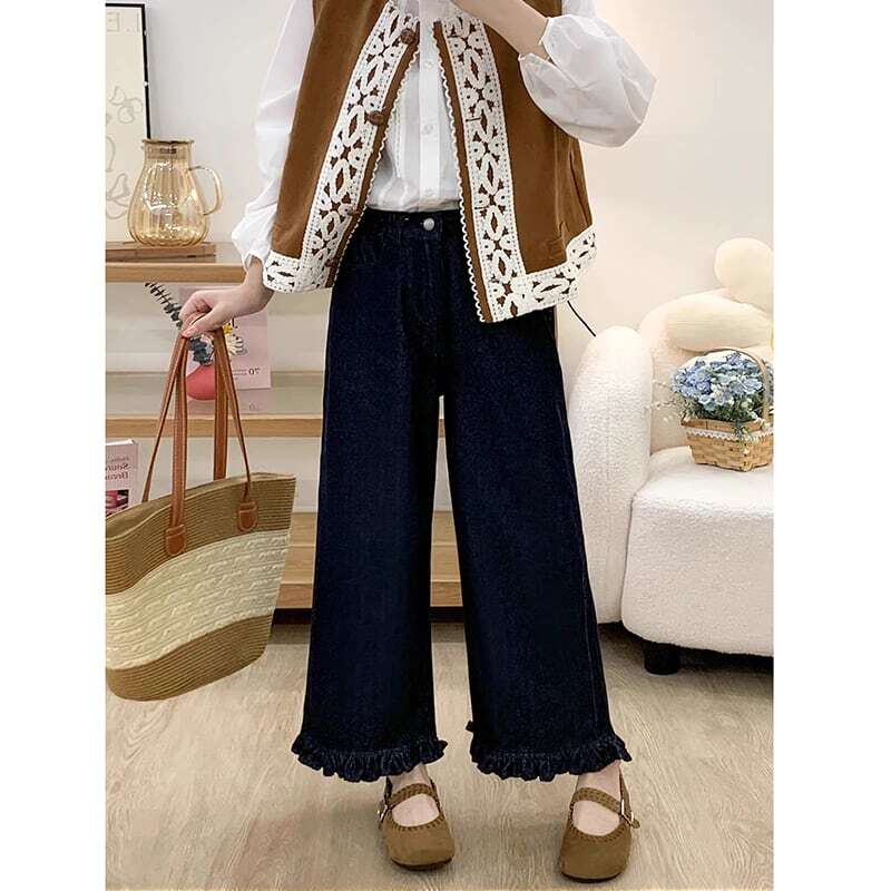 140cm〜フリルレトロデニムブルークロップドジーンズ