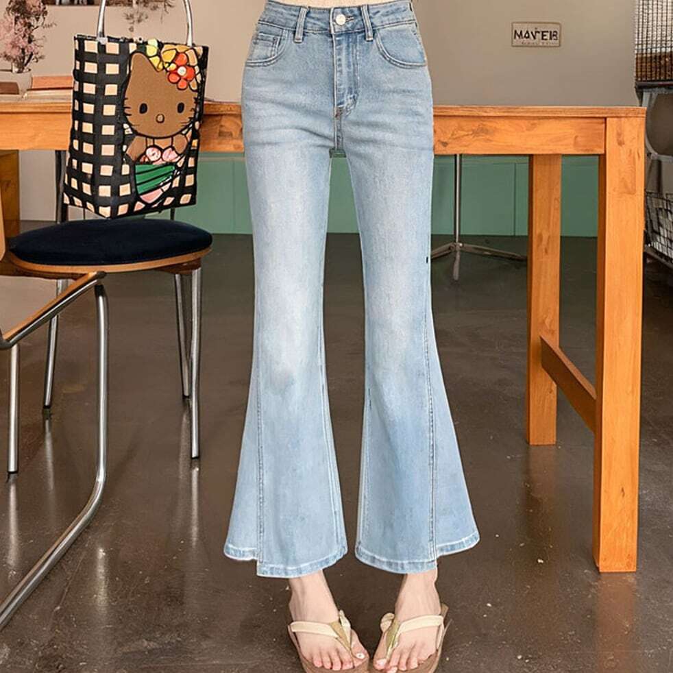 149cm〜 韓国風ハイウエストストレッチストレートジーンズ