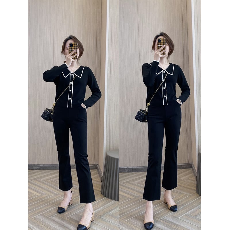 細いウェストラインから広がるフレアパンツは、女性らしさと上品さを引き立てます。