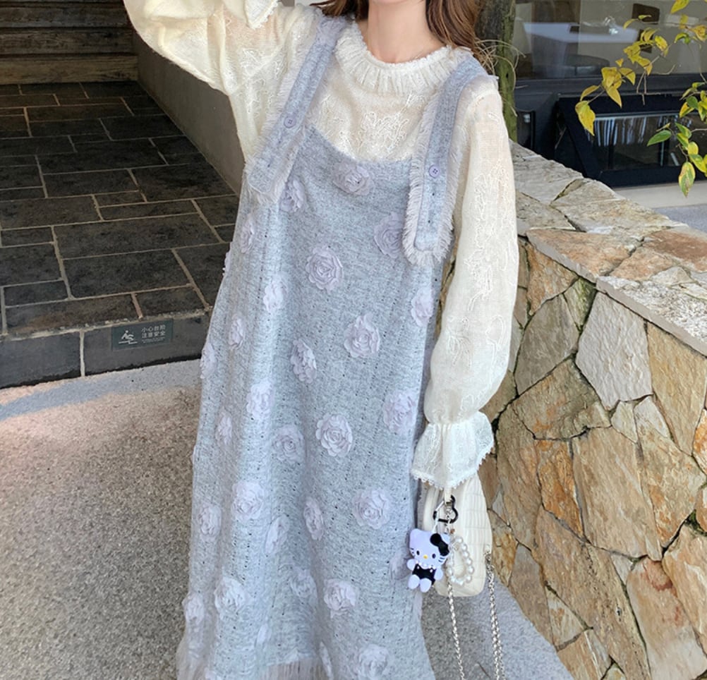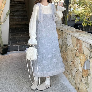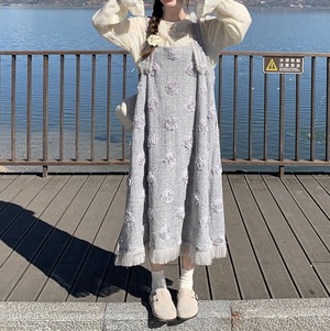 145cm〜 ソリッドフラワーフリンジワンピースセット