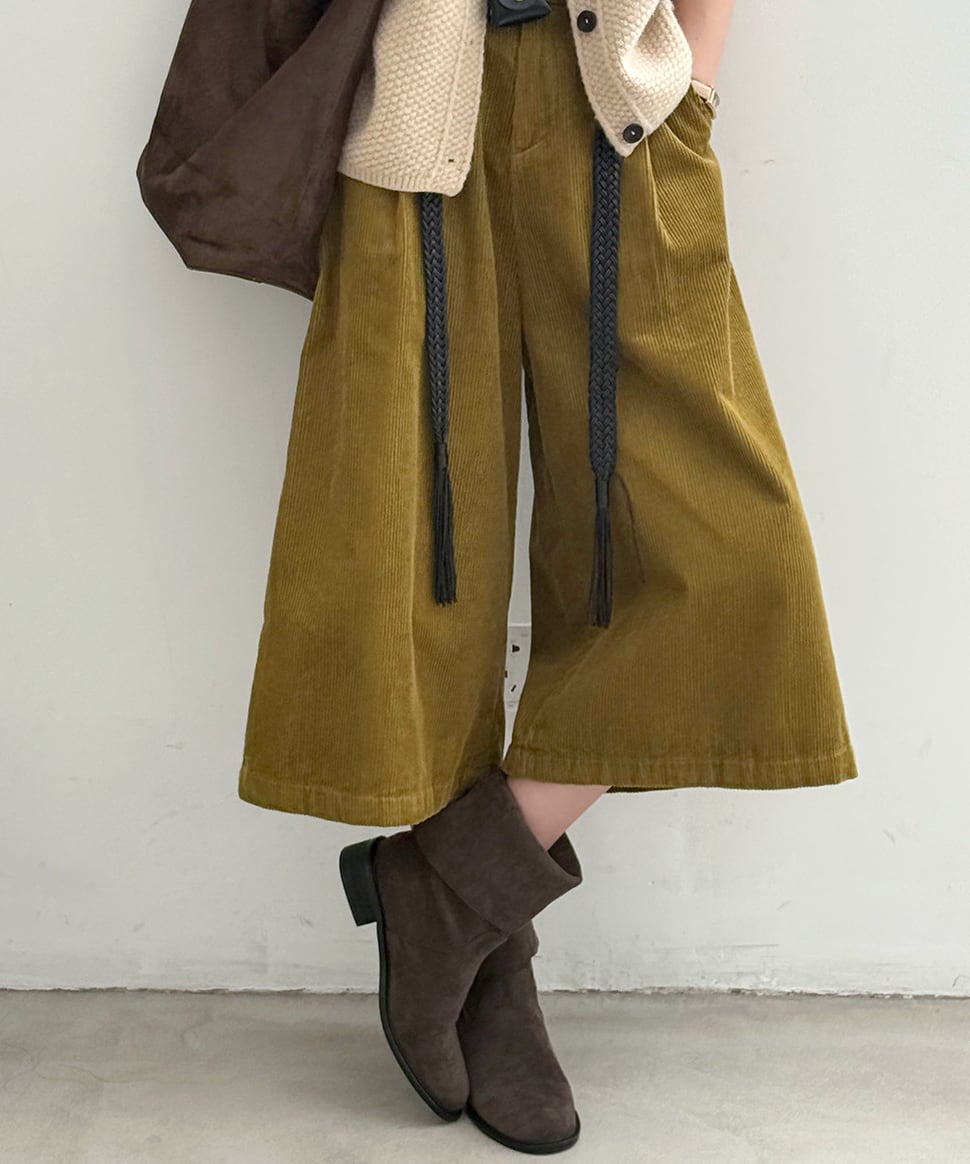 140cm以下〜 秋のレトロコーデュロイハイウエストパンツ