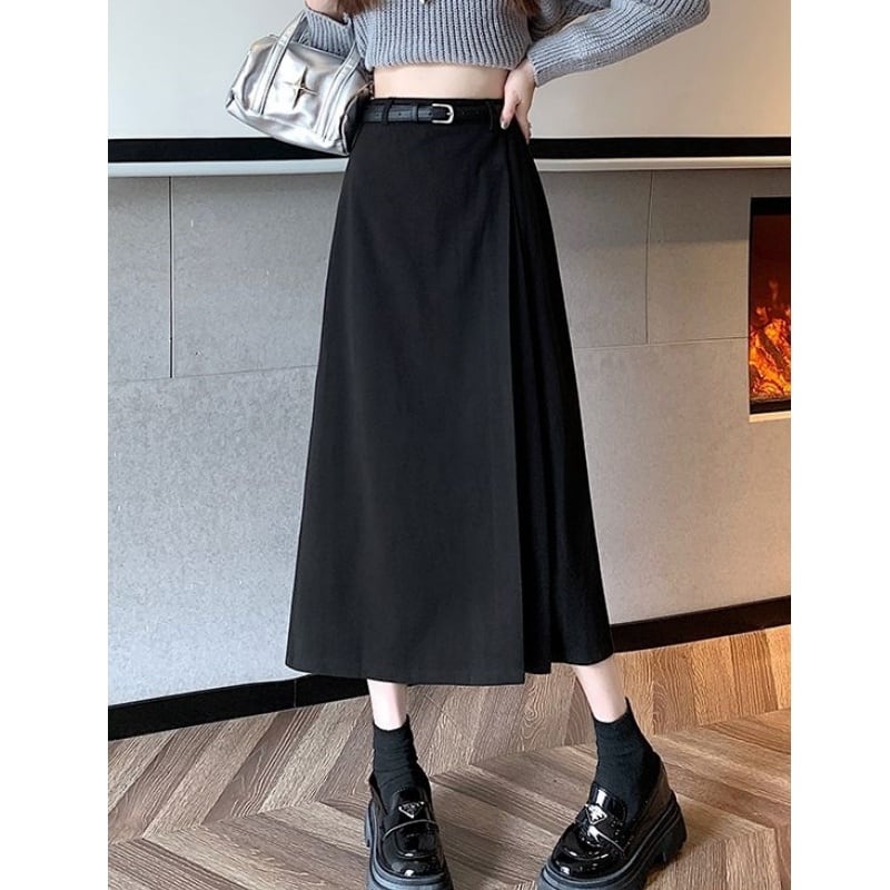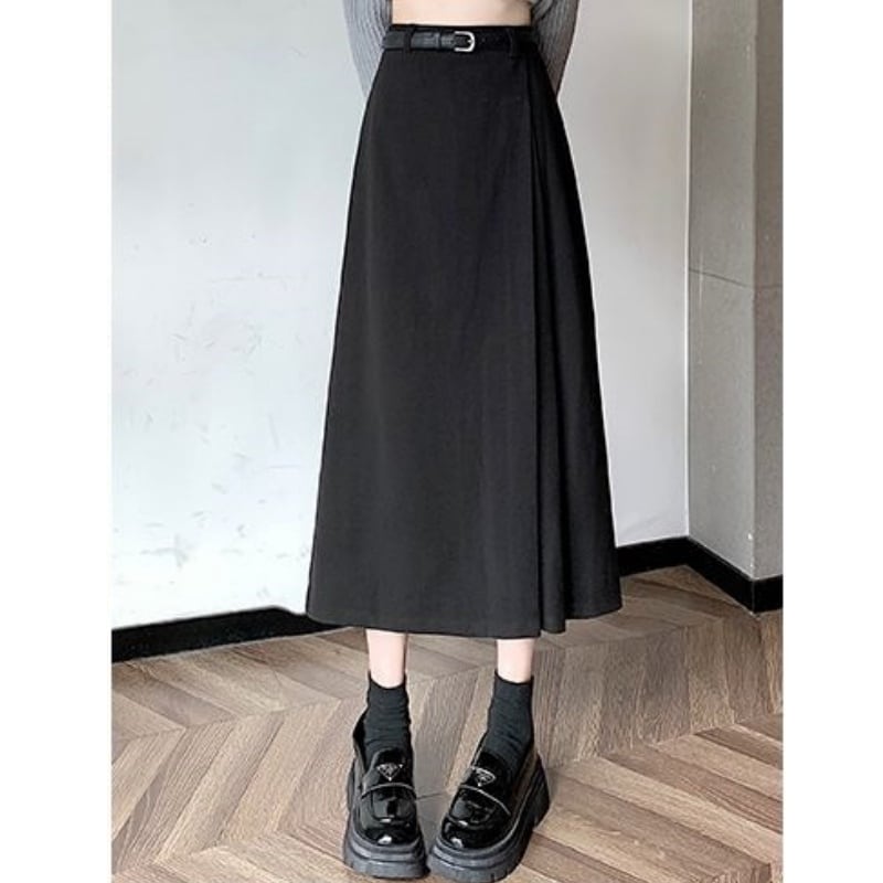 147cm〜 ウールサイドプリーツミディスカート