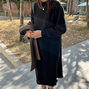 140cm〜 ゆったりフリンジニットワンピース