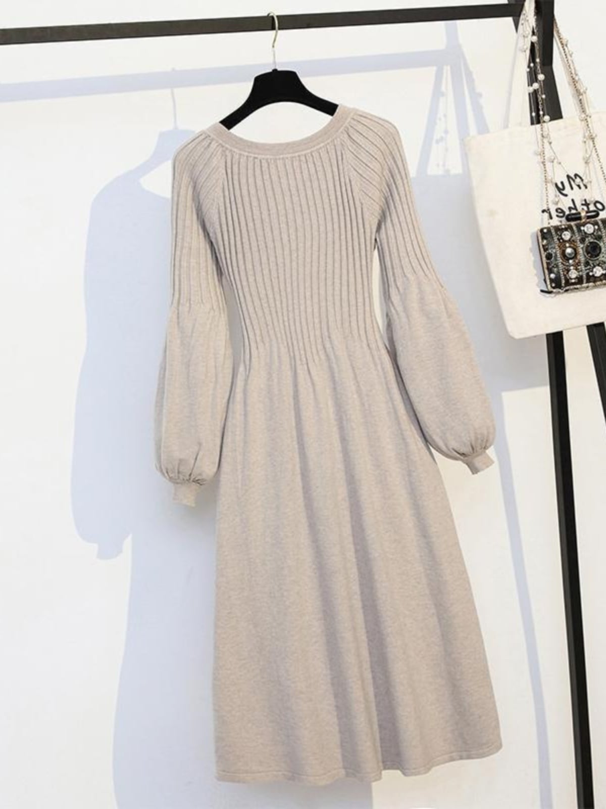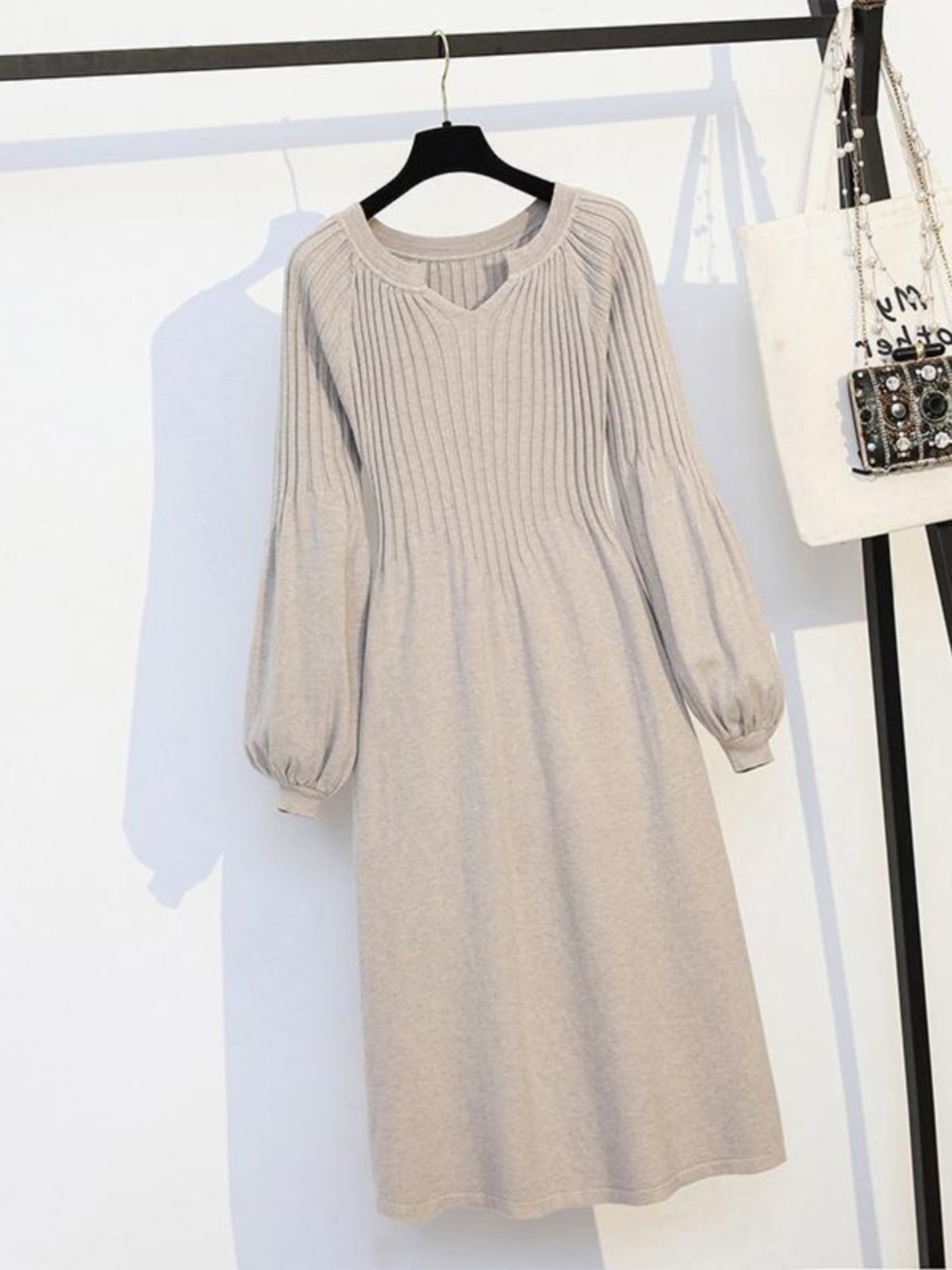 142cm〜 Vネックニットアンダーレイセーターワンピース
