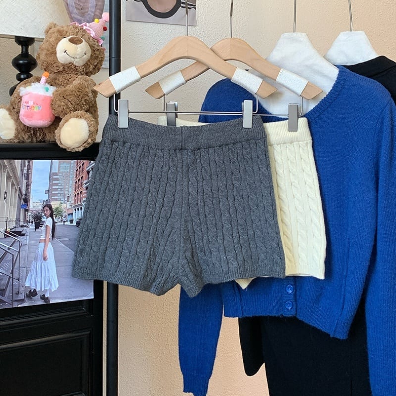 140cm以下〜 カジュアルツイストニットショートパンツ