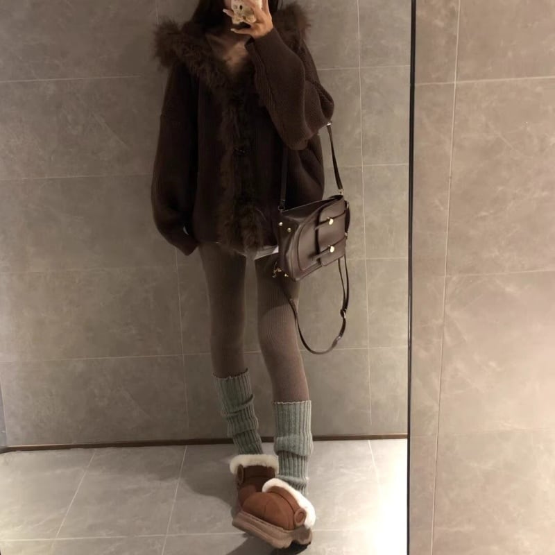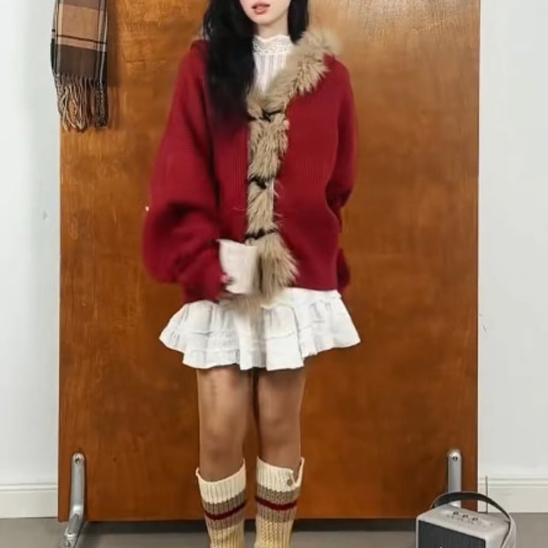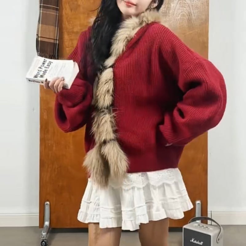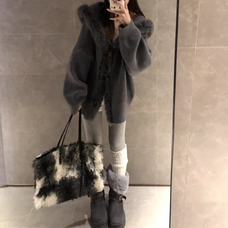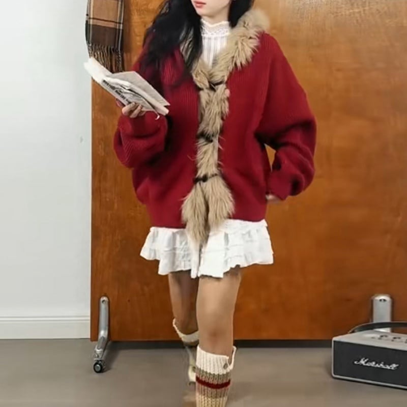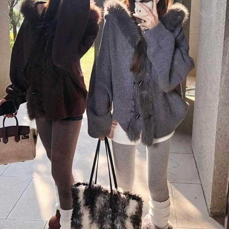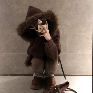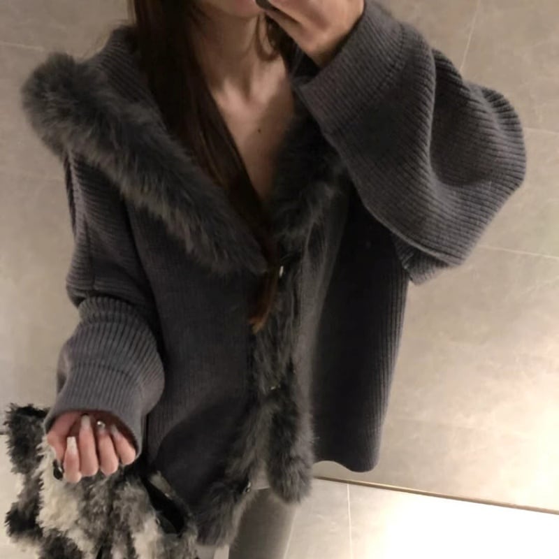 ファーフードニットアウター