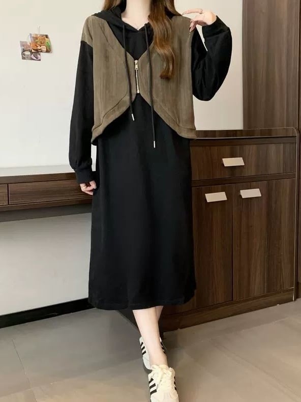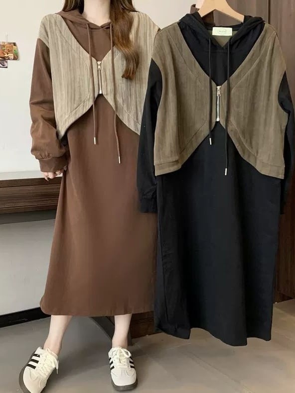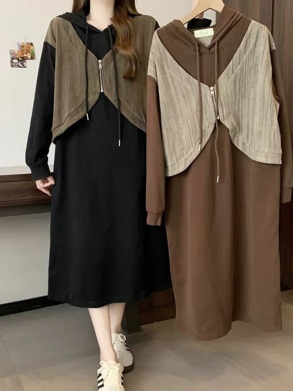 147cm〜 カジュアルスタイルデザインフード付きワンピツーピース