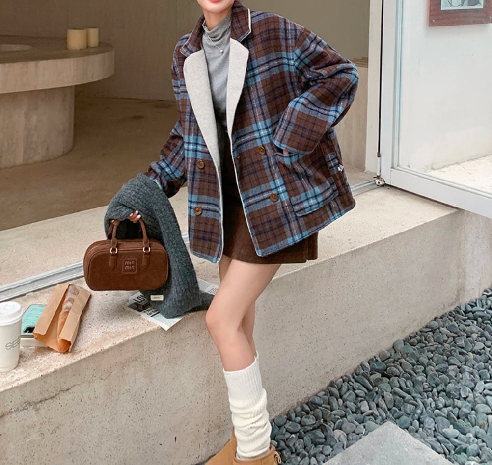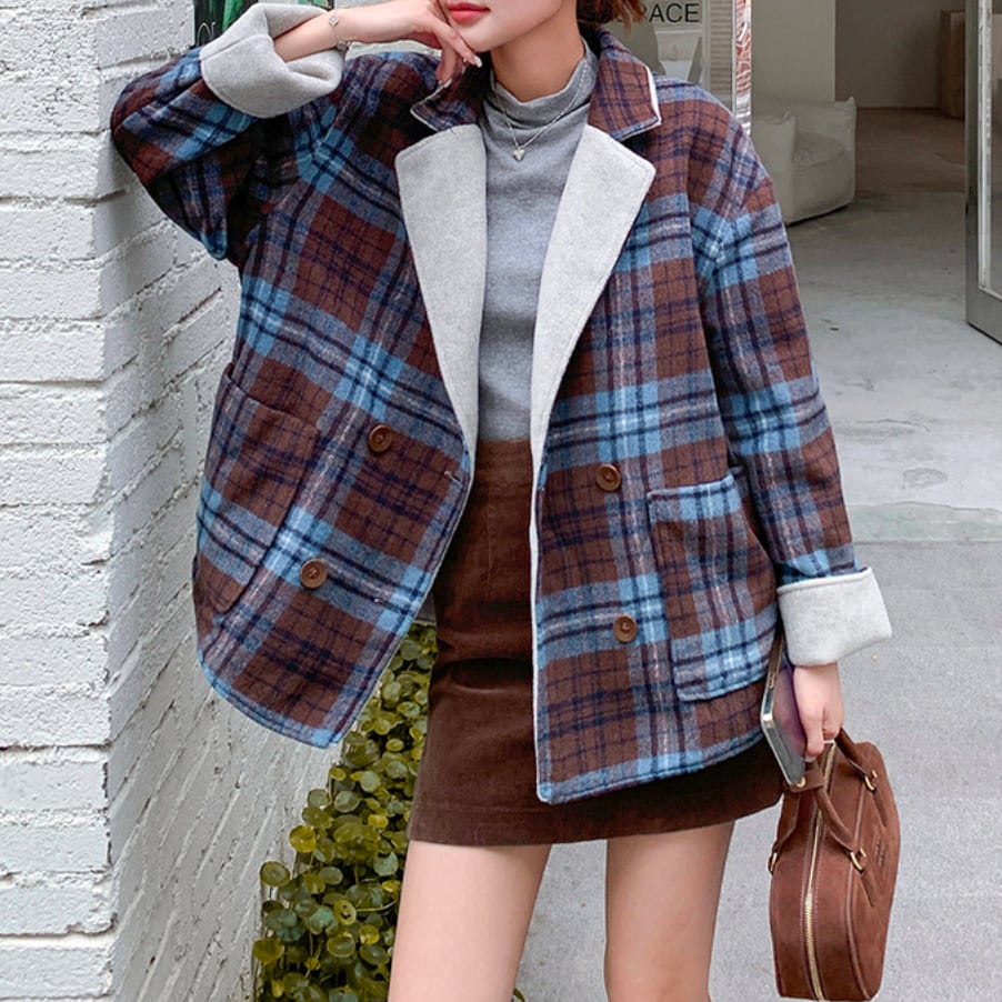 リバーシブルチェックウールジャケット