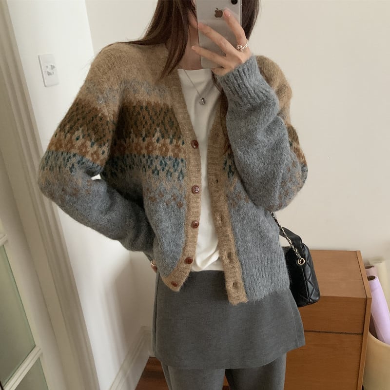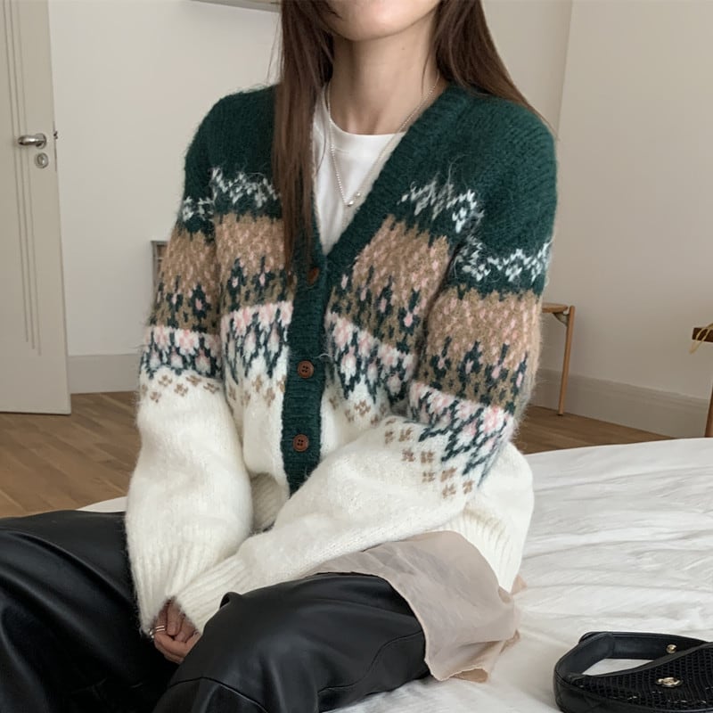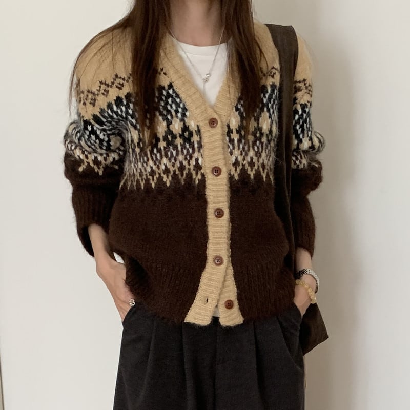コーヒーレトロVネックセーター