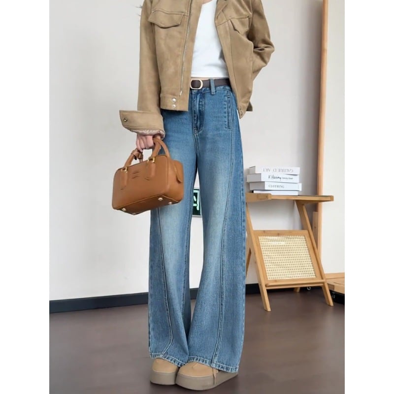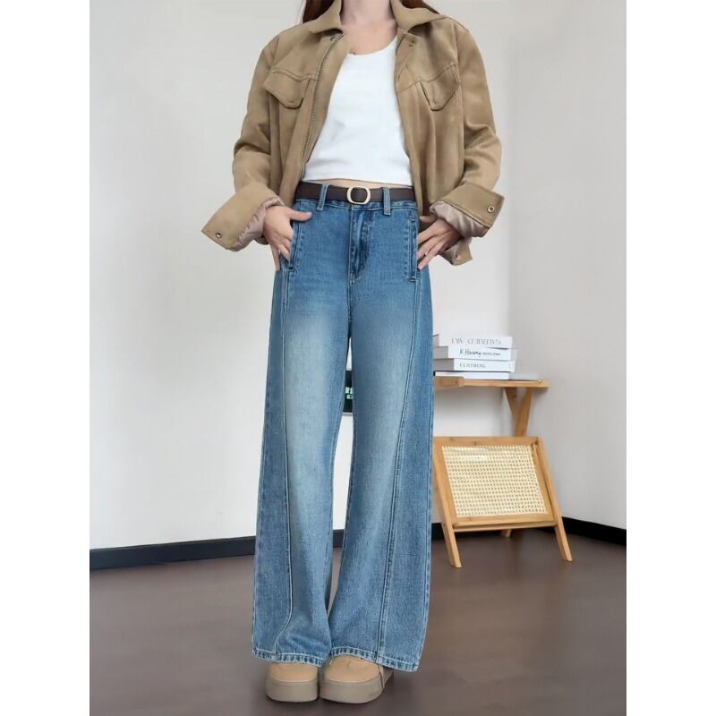 150cm〜 香港風デザインカーブワイドレッグパンツ
