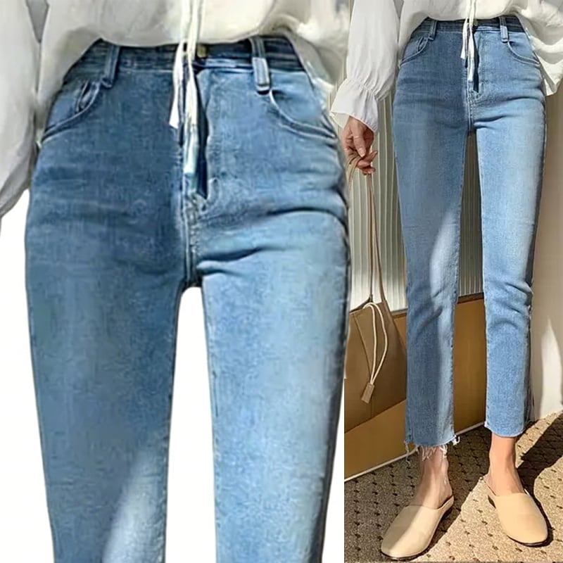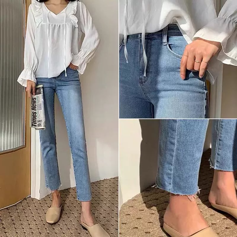 140cm〜 コリアンスモールストレートローエッジジーンズ