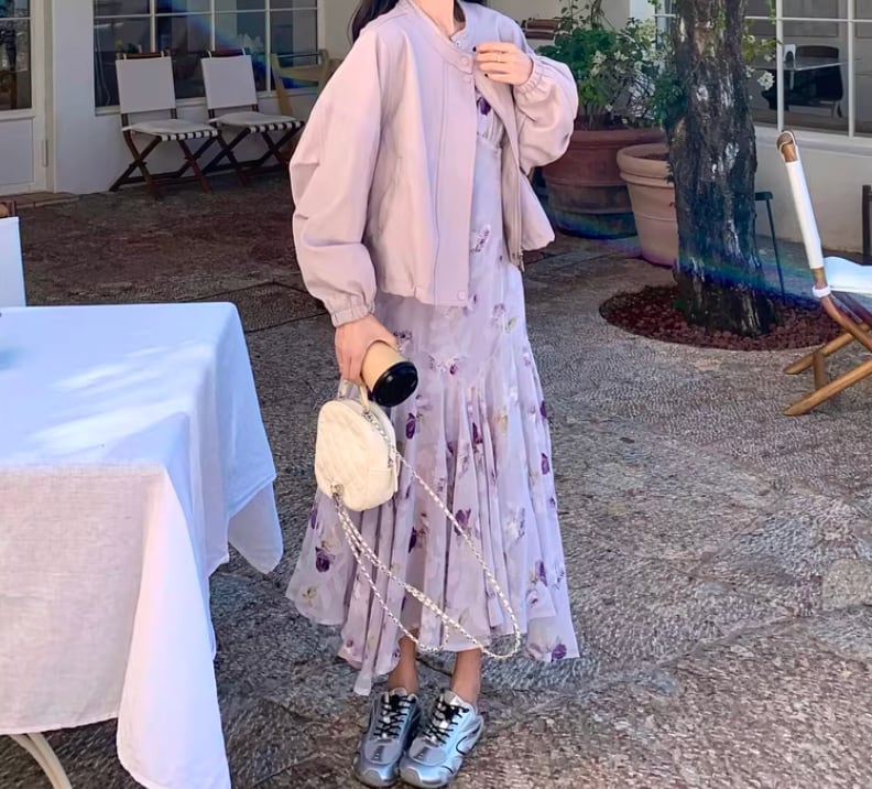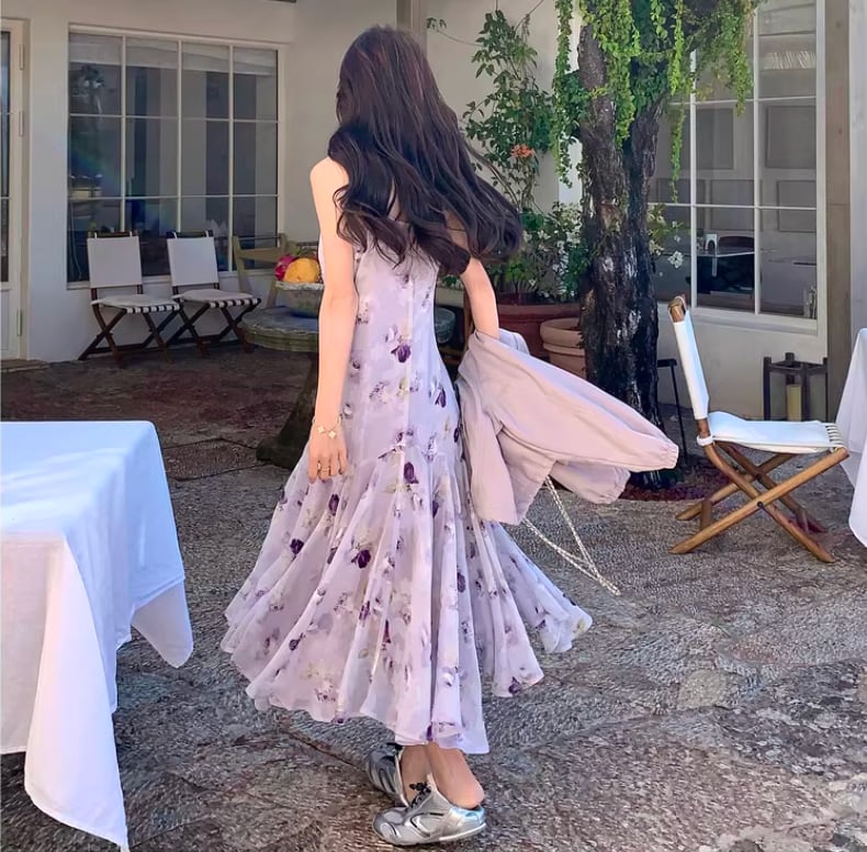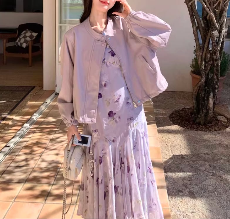 142cm〜 タロイモパープル花柄ドレススーツツーピースセット