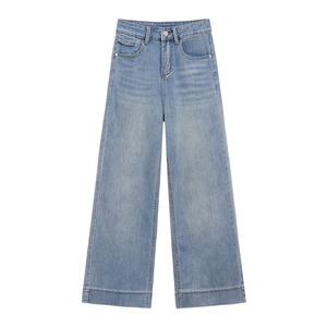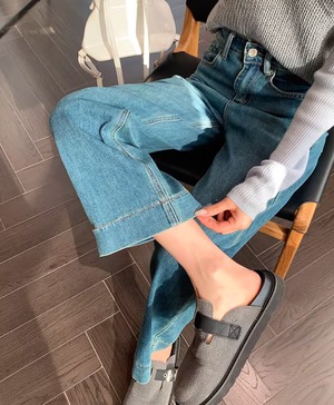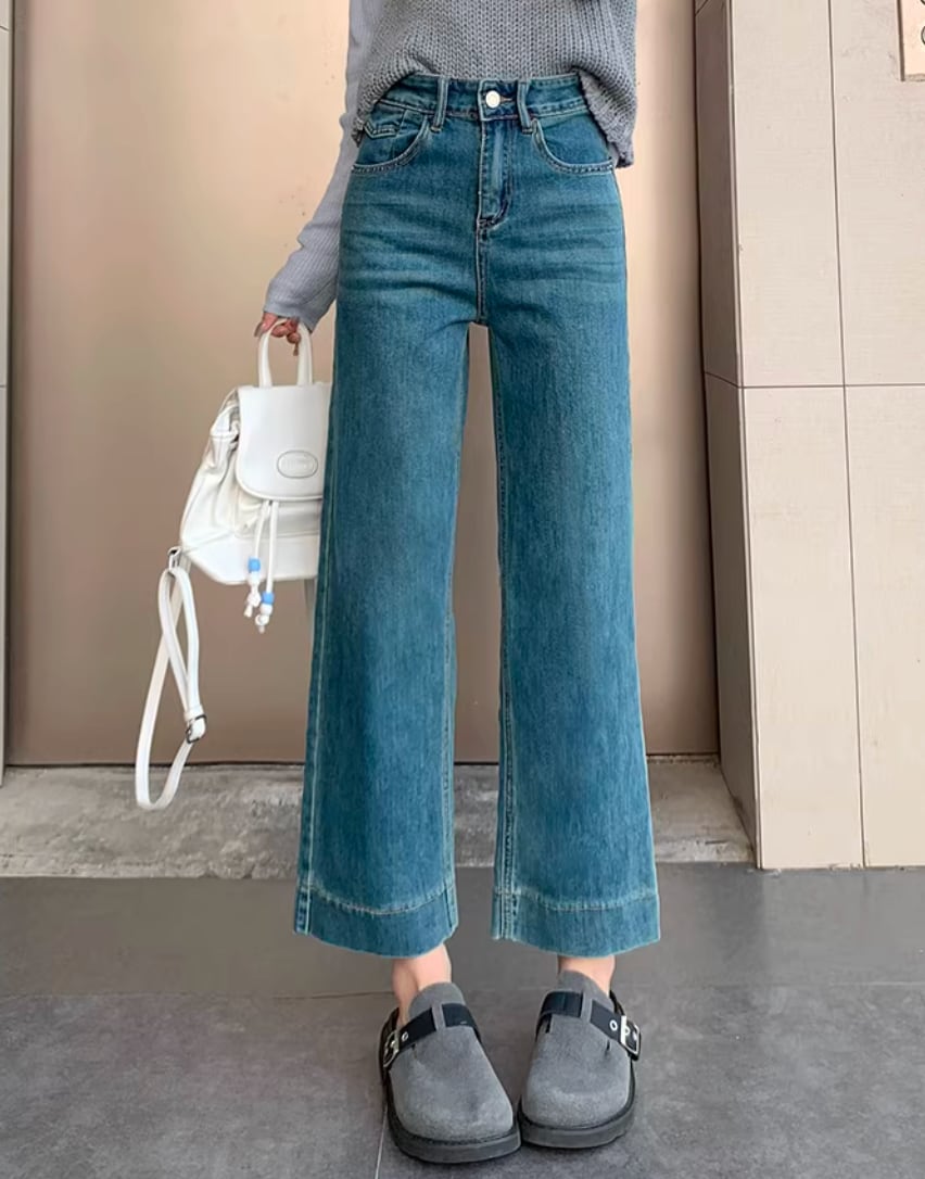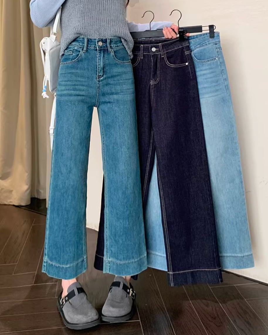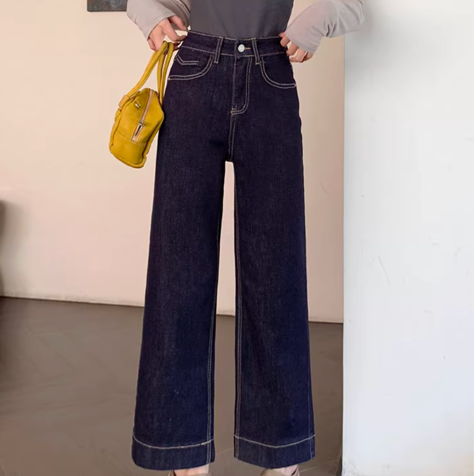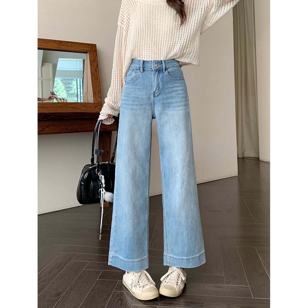 149cm〜 韓国風ハイウエストストレッチストレートジーンズ