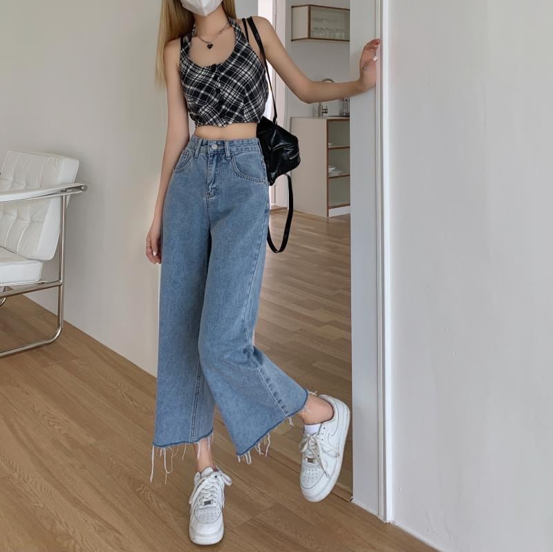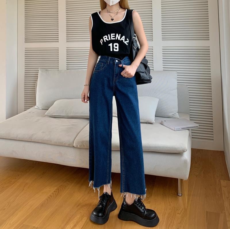 140cm〜 ローエッジデニムクロップドワイドレッグパンツ