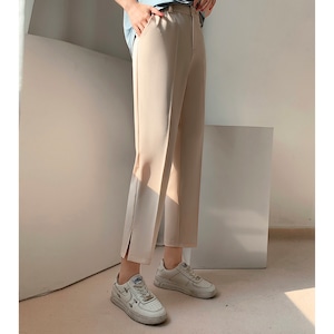 センタープレスが入っているので、スタイリッシュな印象を与え、スリットが施されているので足首がちらりと espaceして、抜け感のある着こなしを楽しめます。