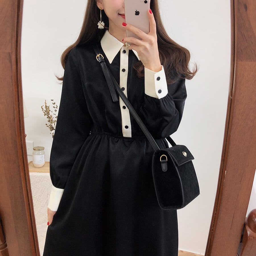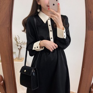 〈再販〉146cm〜 コントラストハイウエストワンピース N737